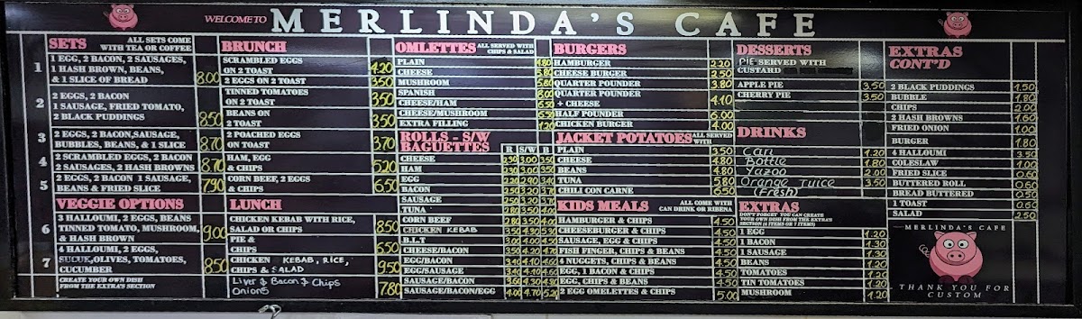 Welcome to Merlinda's Cafe, a charming eatery located at 246 Sherwood Park Ave, Sidcup. This quaint cafe brings an inviting atmosphere enriched by its delightful menu. The standout offerings include a variety of jacket potatoes filled with ingredients like cheese and beans, and an array of hearty specials such as Chicken Curry with rice, Shepherd's Pie, and classic roast dinners featuring meats like beef and lamb.